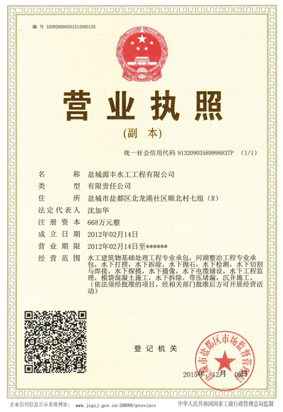 鹽城源豐水工工程有限公司是一家專(zhuān)業(yè)從事水下作業(yè)的股份制企業(yè),公司多年以來(lái),堅(jiān)持以人為本,誠(chéng)信經(jīng)營(yíng),憑借質(zhì)量、效率、信譽(yù)的作風(fēng)贏得客戶的信賴和贊譽(yù)。